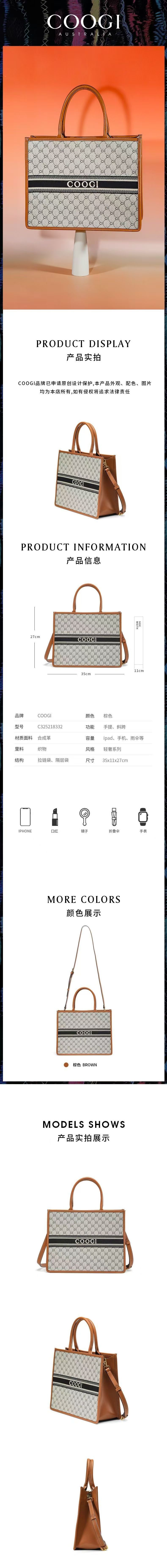 COOGI包包女士新款大容量單肩通勤包斜跨包手提包送女友節日禮物