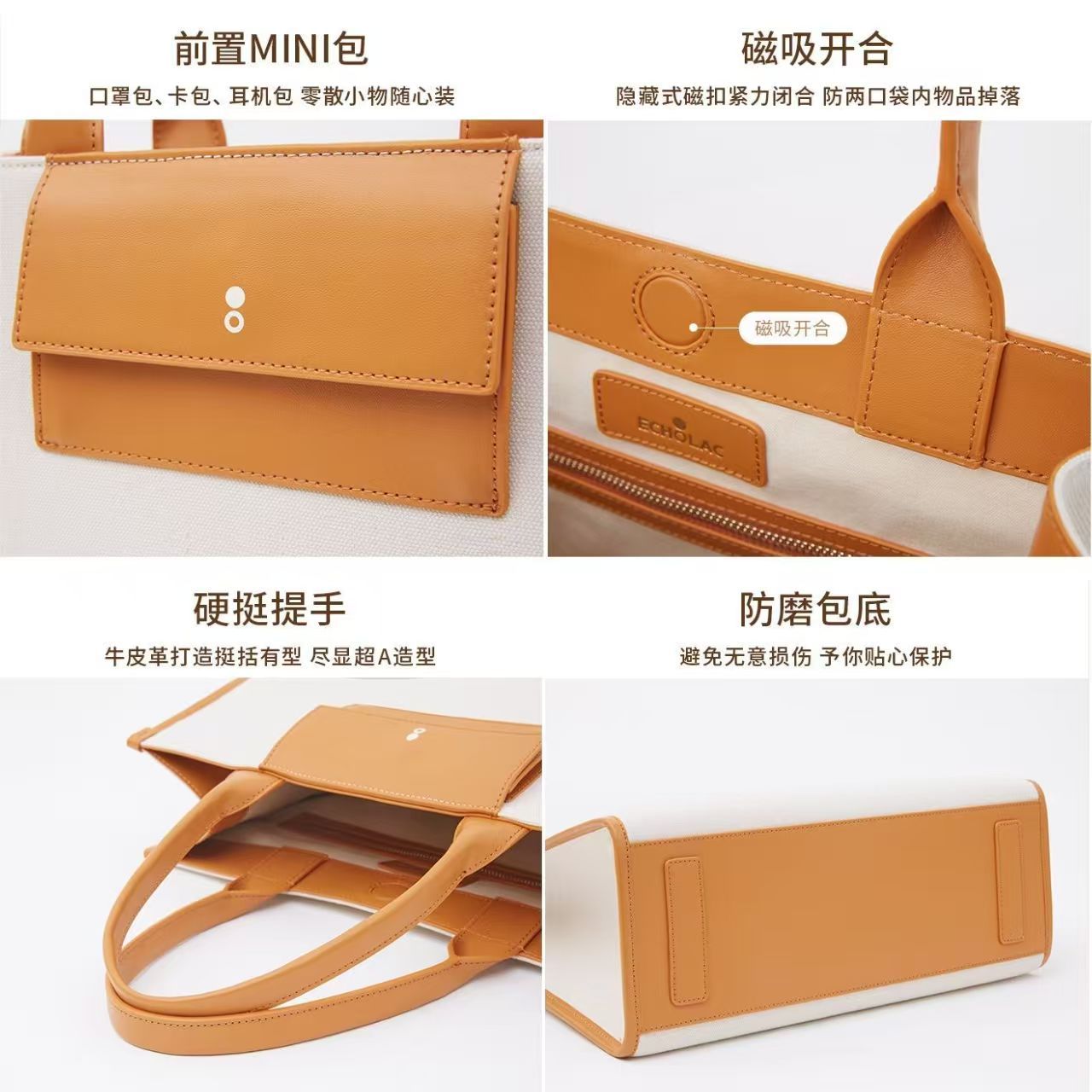 愛可樂Echolac原創托特包ins女包撞色大容量百搭外出通勤手提包