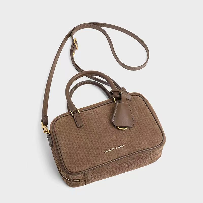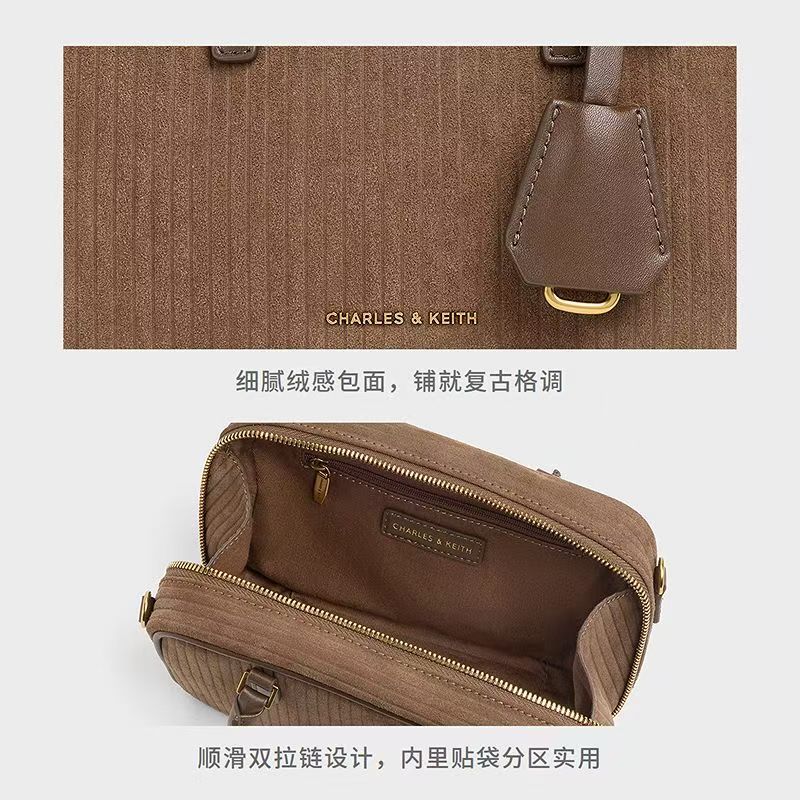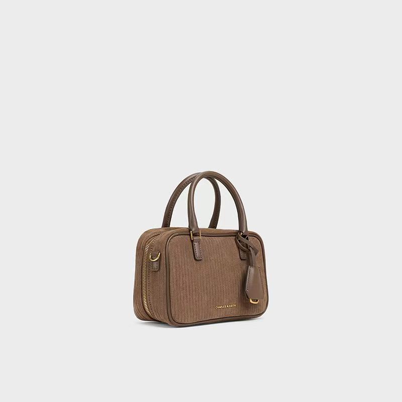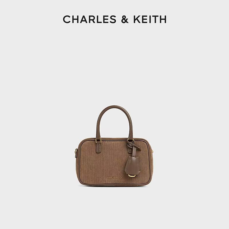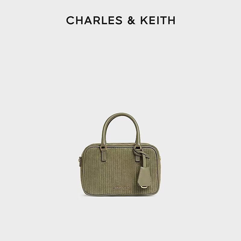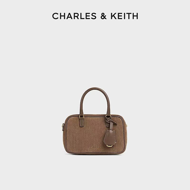 獨家折扣CHARLES&KEITH復古絨面波士頓包保齡球包