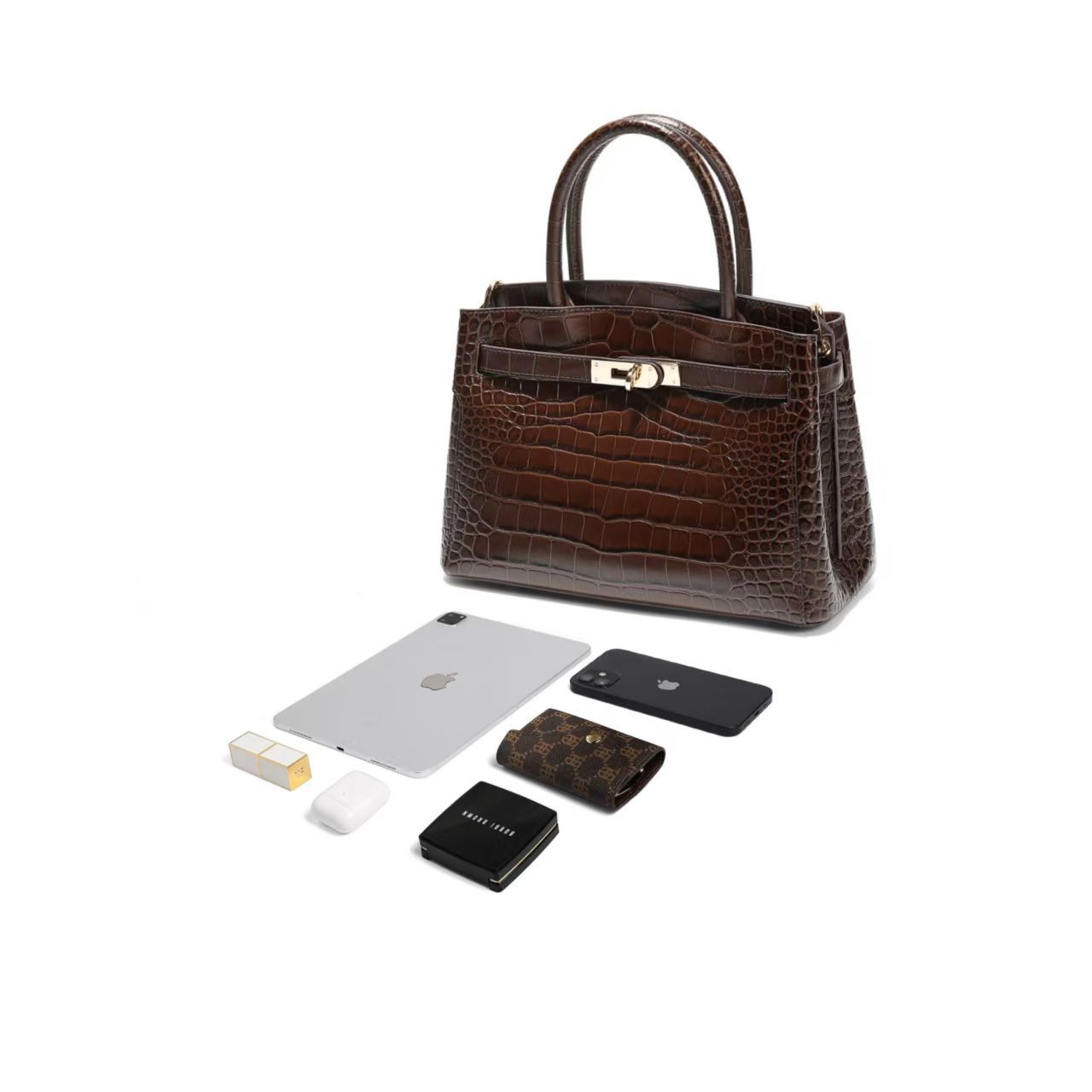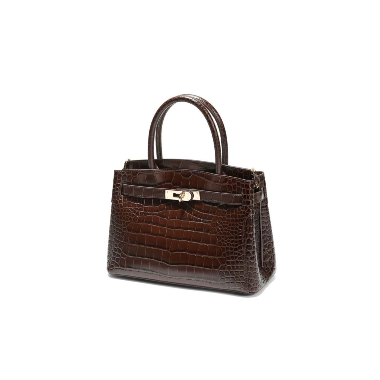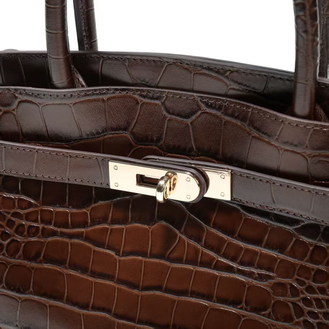 百麗包女25新鱷魚紋頭層牛皮革通勤鉑金包單肩斜挎手提包X7429DX5