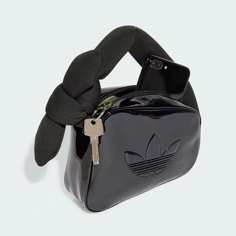 adidas阿迪達斯三葉草手提包2025夏女光澤感蝴蝶結小拎包