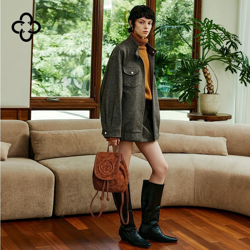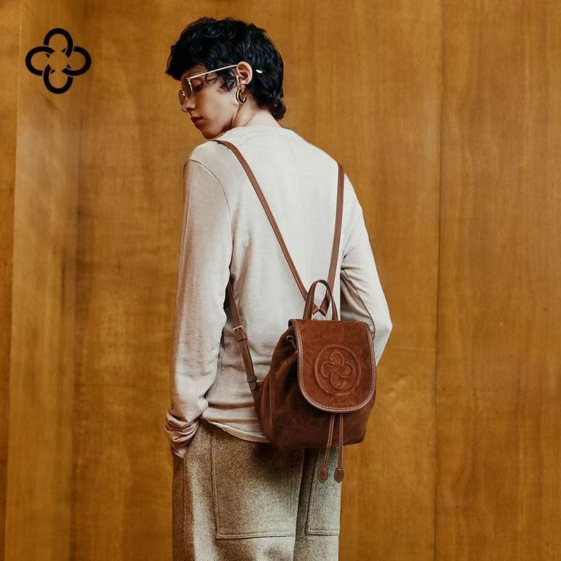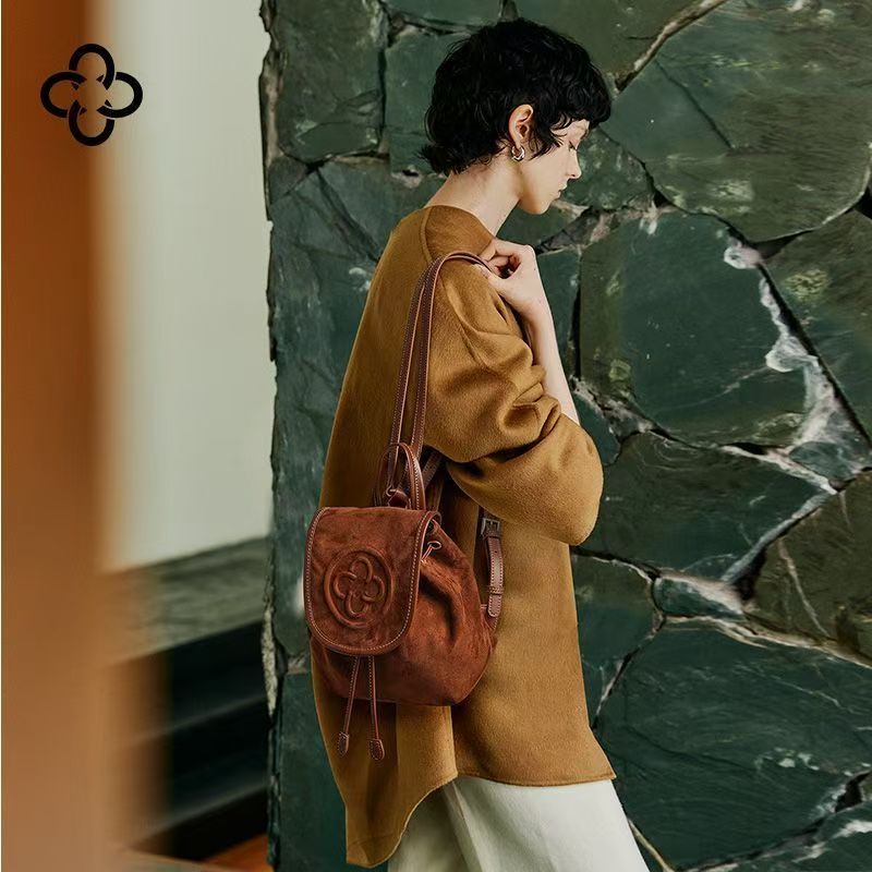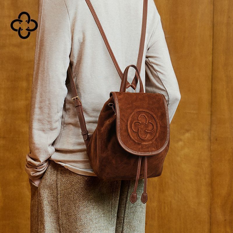 CASSILE卡思樂絨面羊皮雙肩包2026新款女包百搭輕便歐美小背包