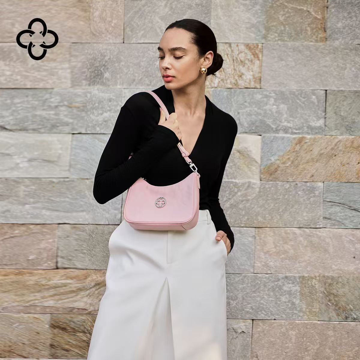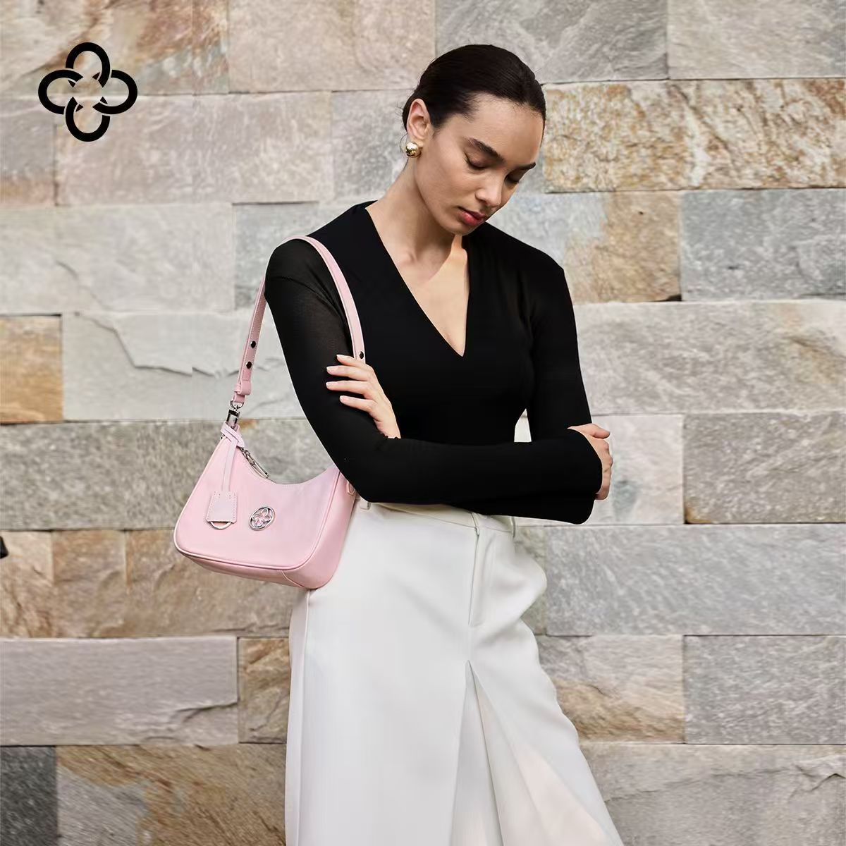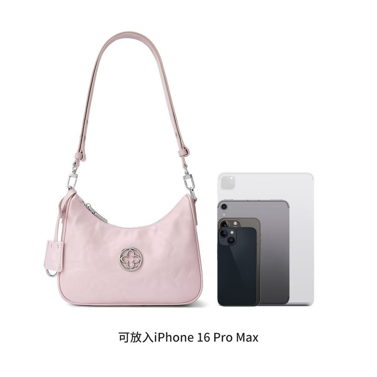 CASSILE卡思樂頭層牛皮腋下包女2025新款粉色植鞣通勤百搭斜挎包