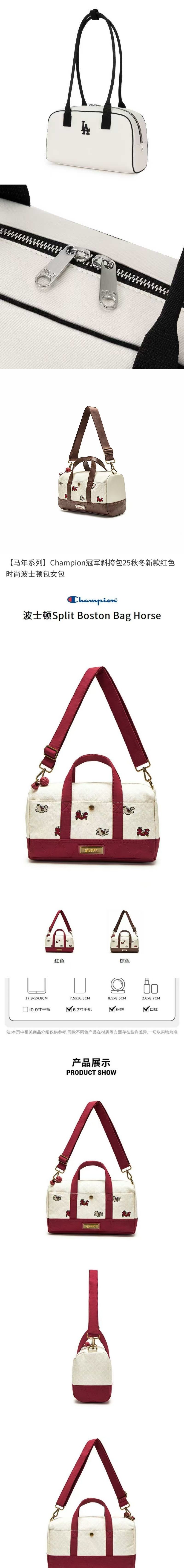 Champion冠軍斜挎包25秋冬新款紅色時尚波士頓包女包