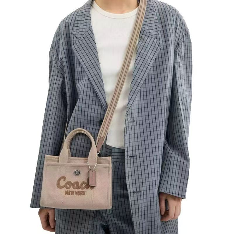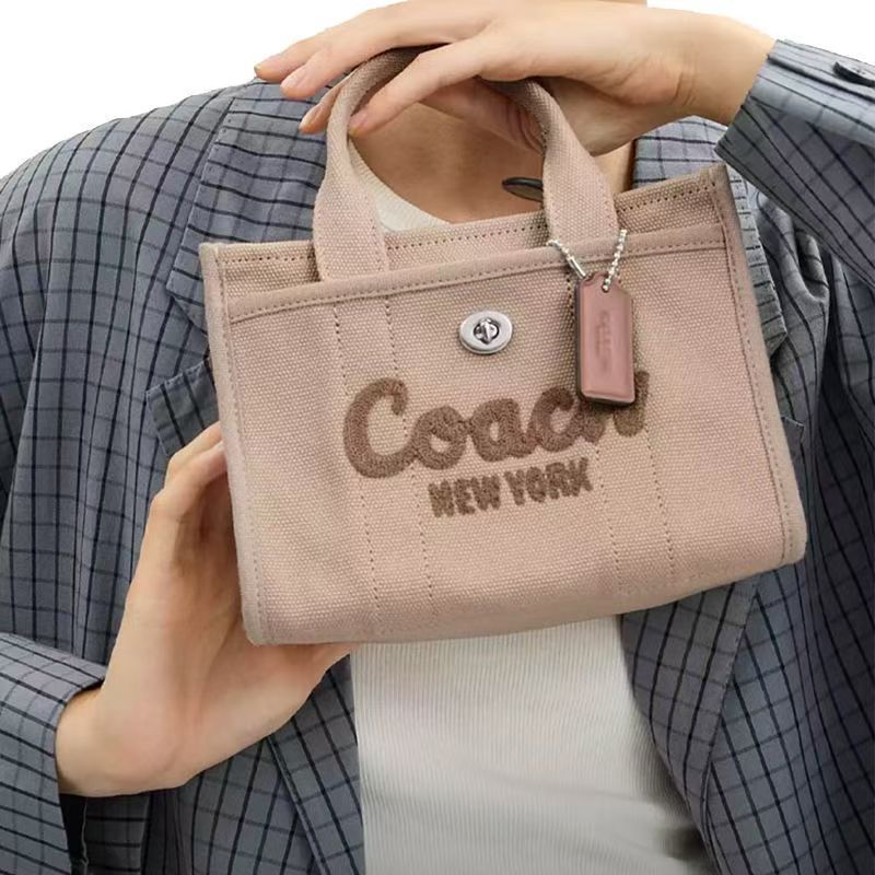 COACH蔻馳Cargo20草書刺繡帆布托特單肩斜跨包小號
