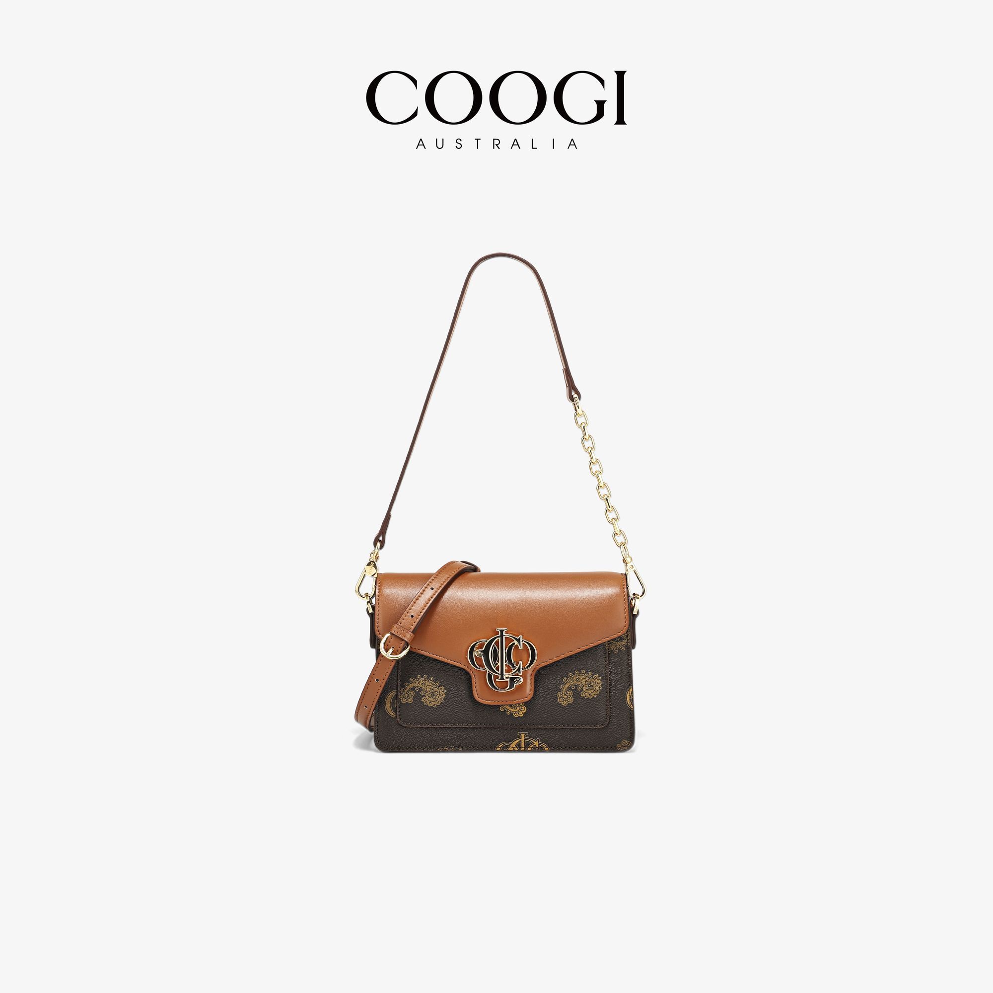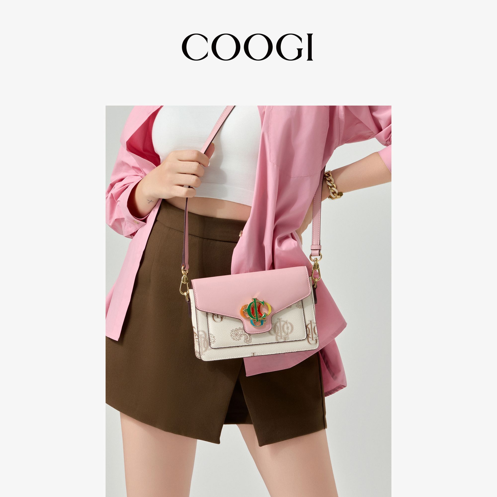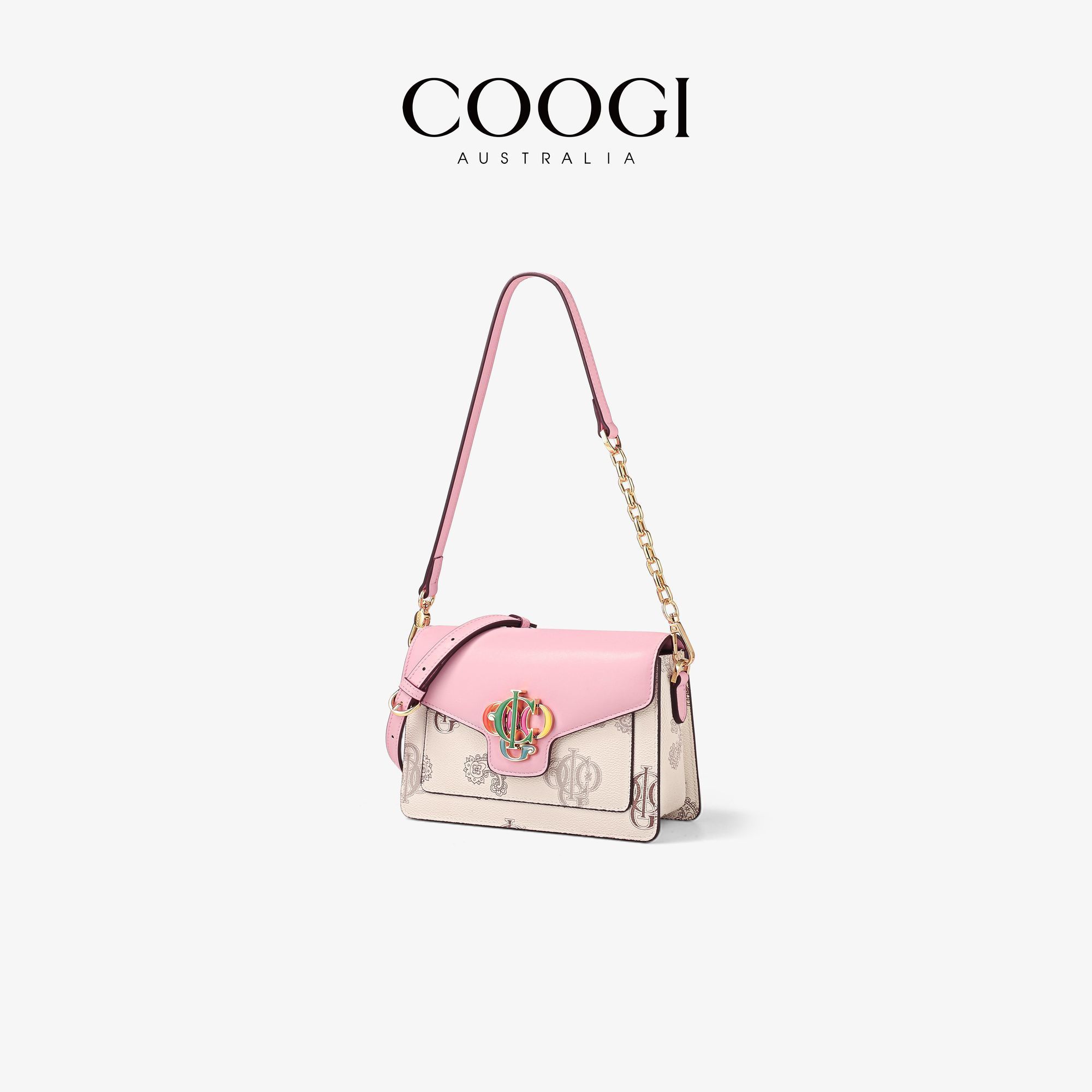COOGI女士小方包撞色logo時尚百搭手提單肩包送女友聖誕節顯氣質