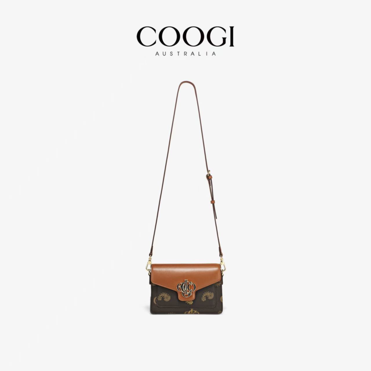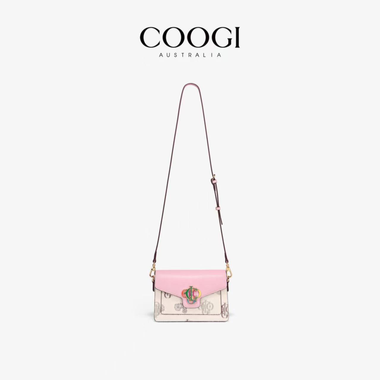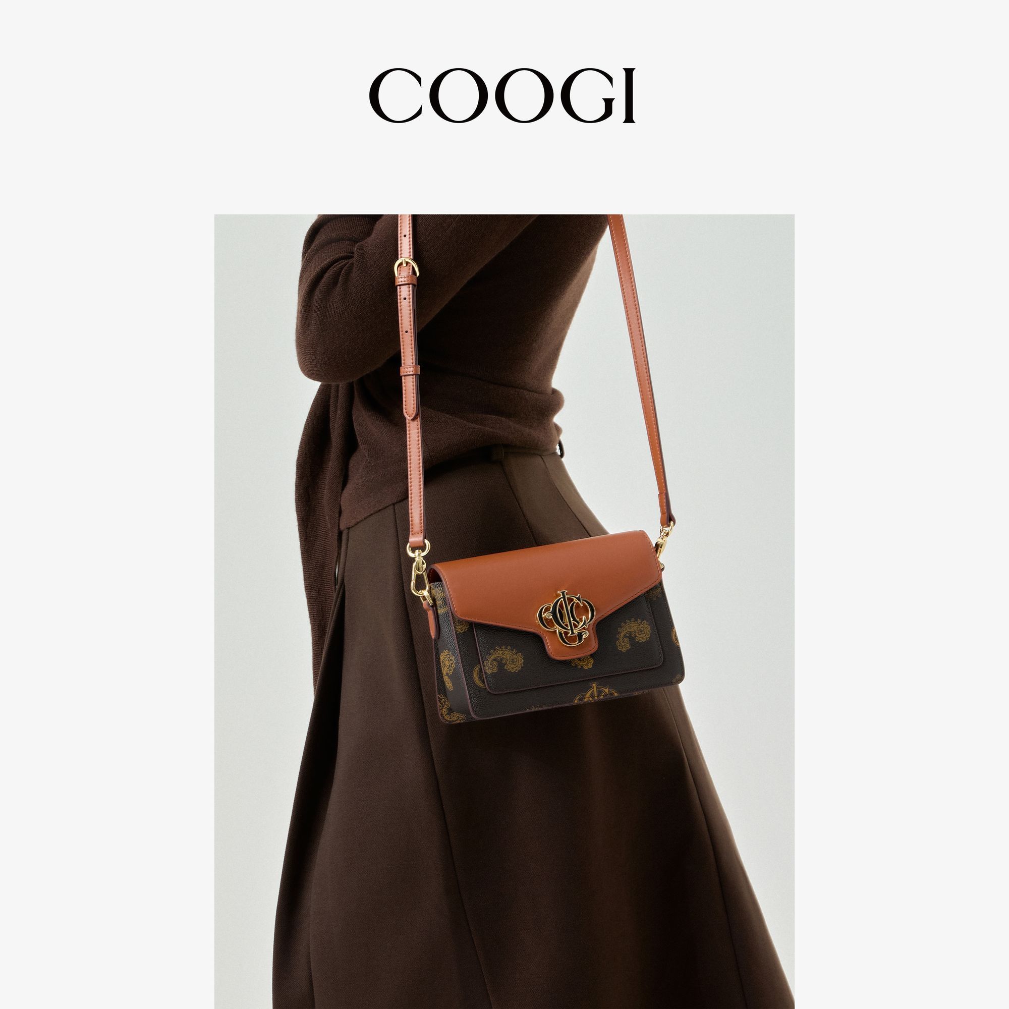 COOGI女士小方包撞色logo時尚百搭手提單肩包送女友聖誕節顯氣質