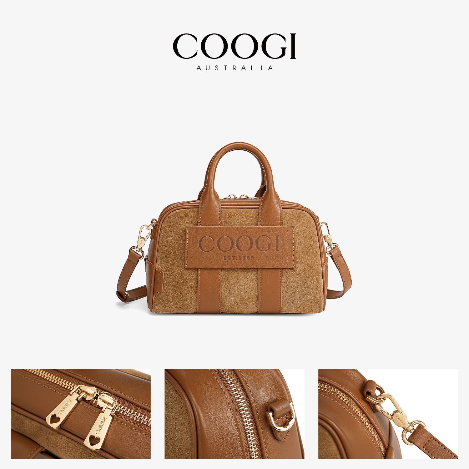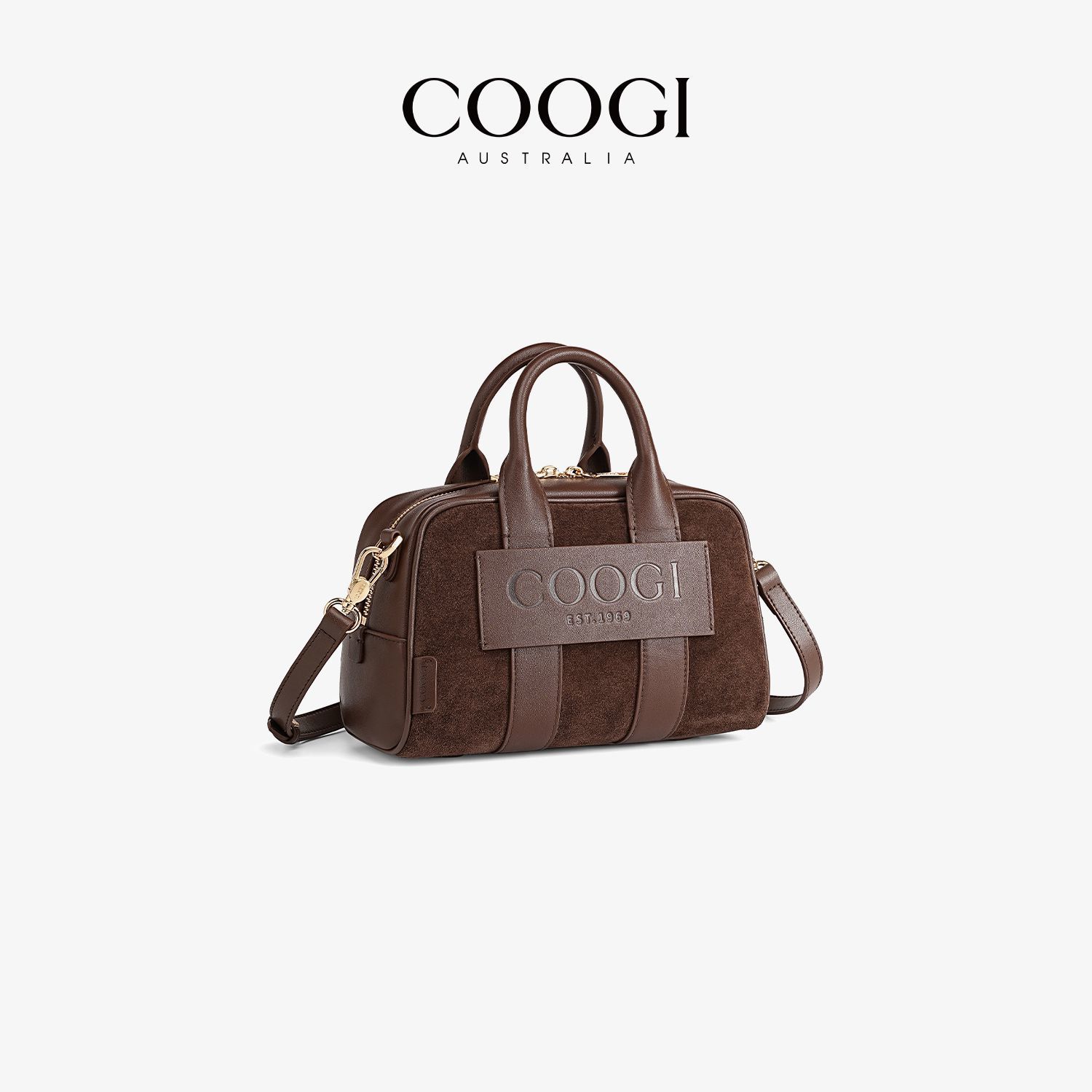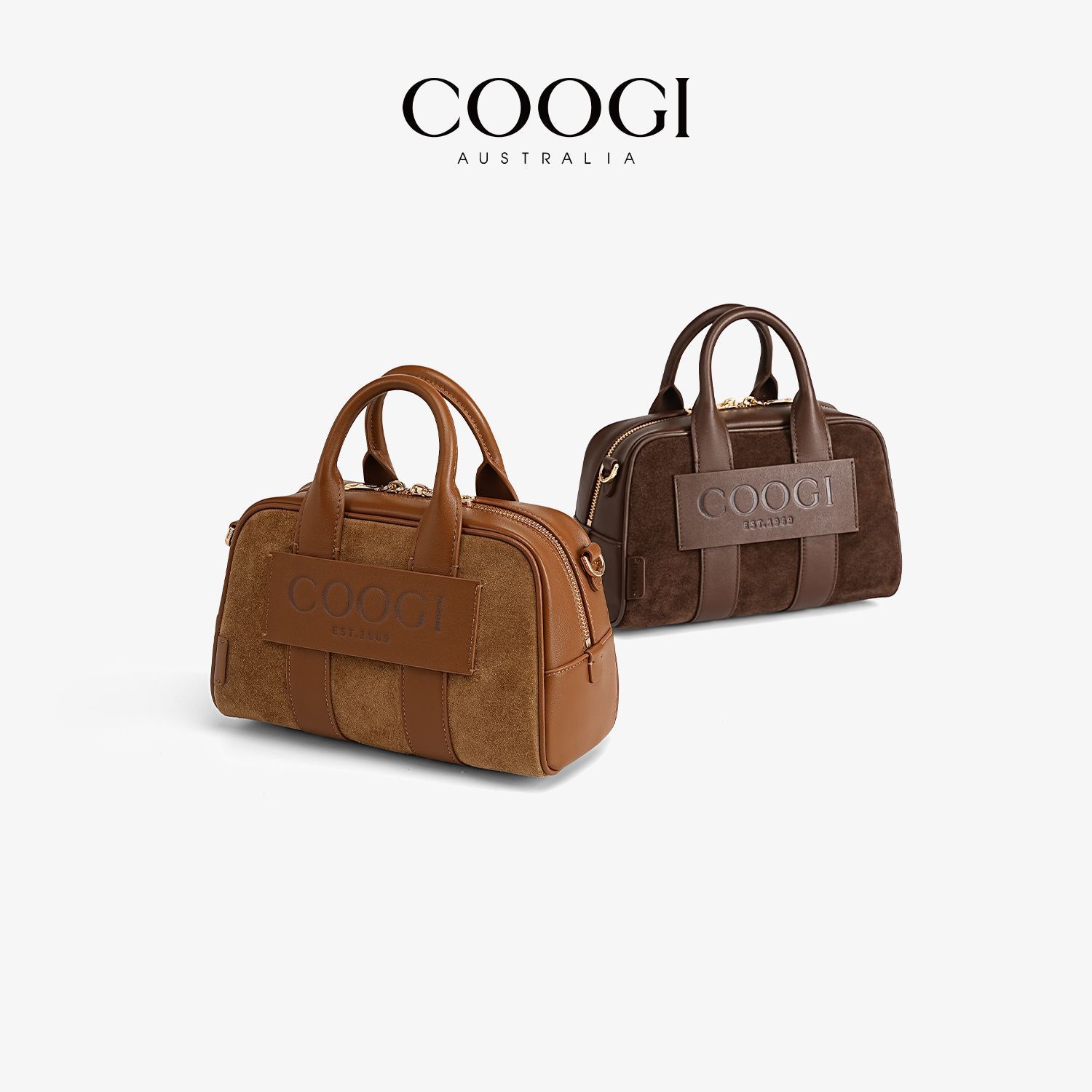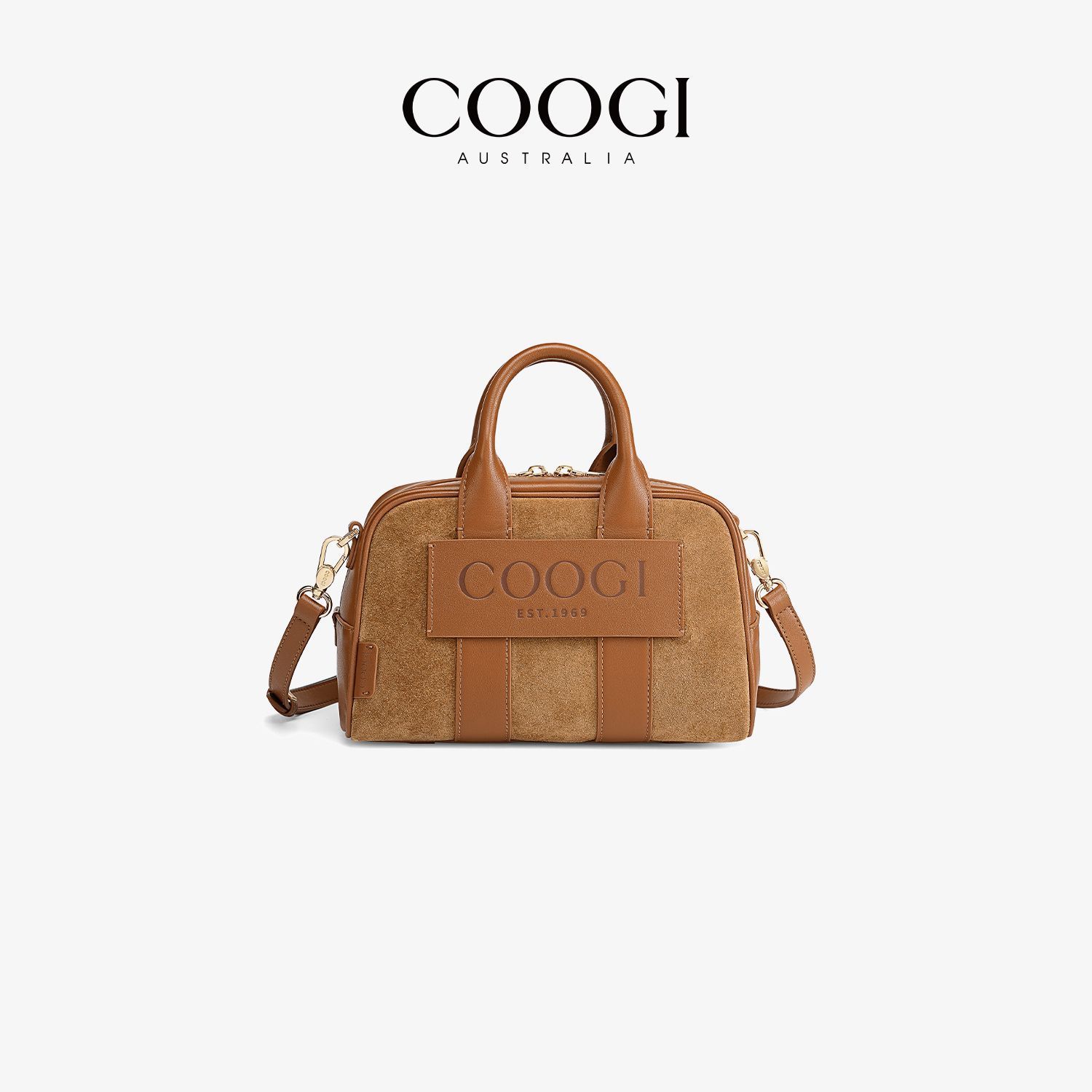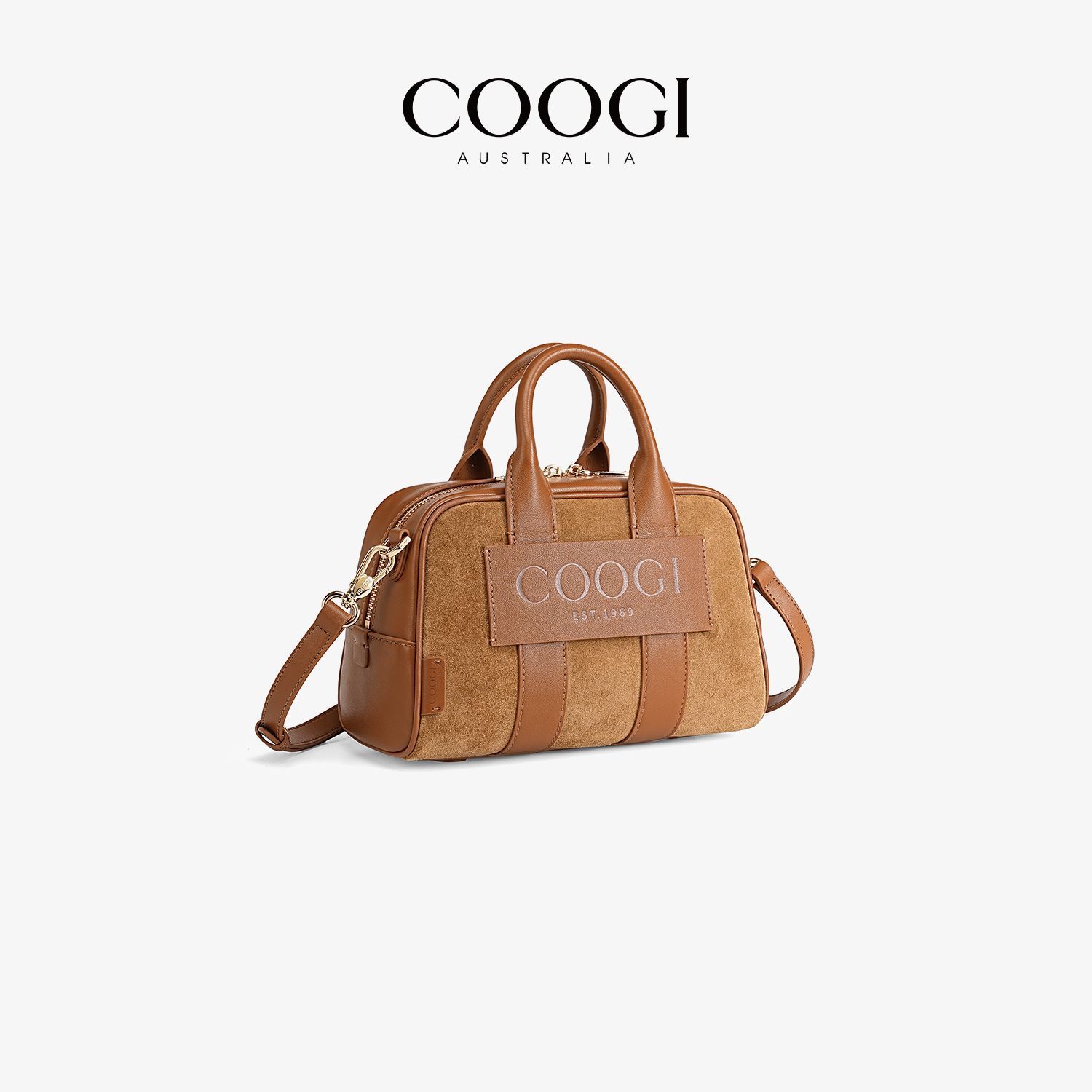 COOGI輕奢女包新款輕奢真皮手提包波士頓包保齡球包 單肩斜挎包