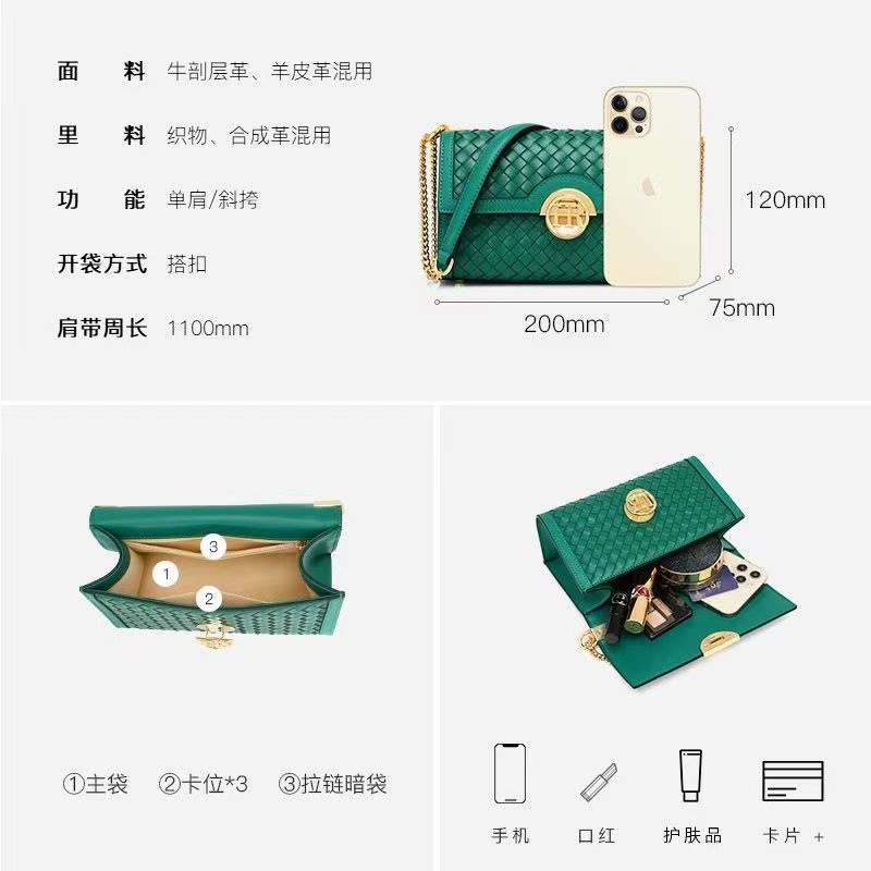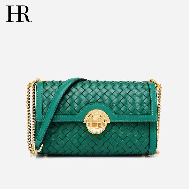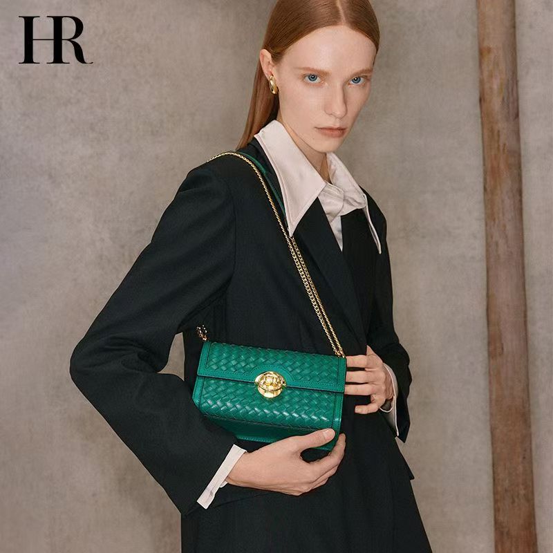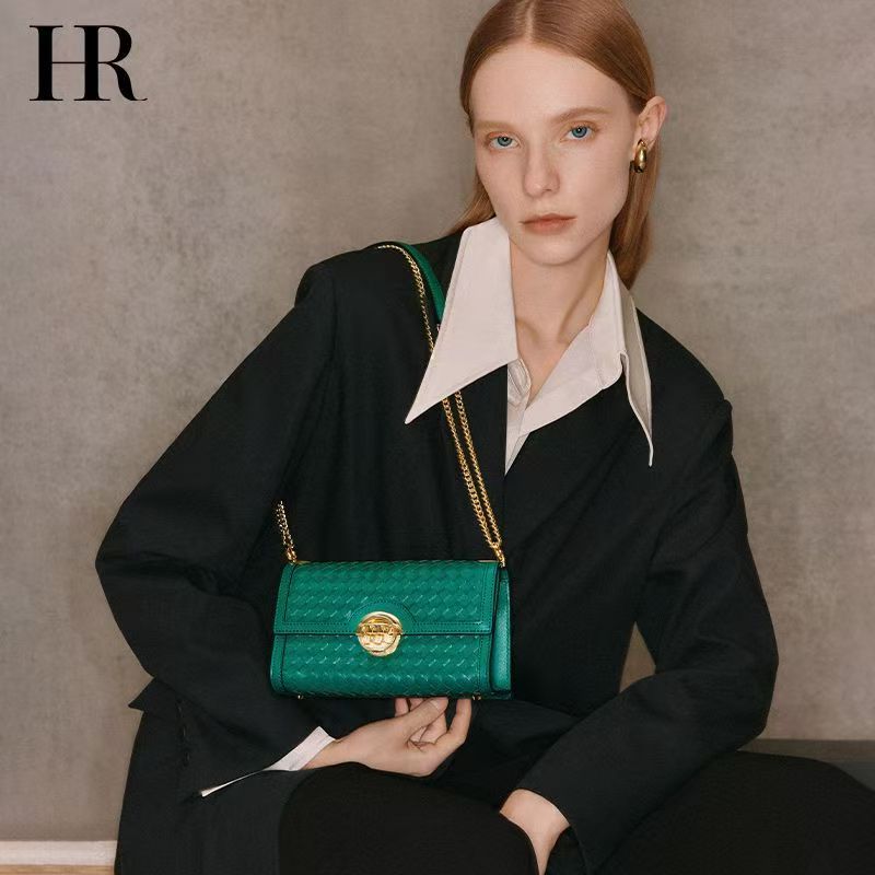 HR赫蓮娜包包2025秋冬款編織包菱格鏈條包羊皮輕奢單肩斜挎包女包
