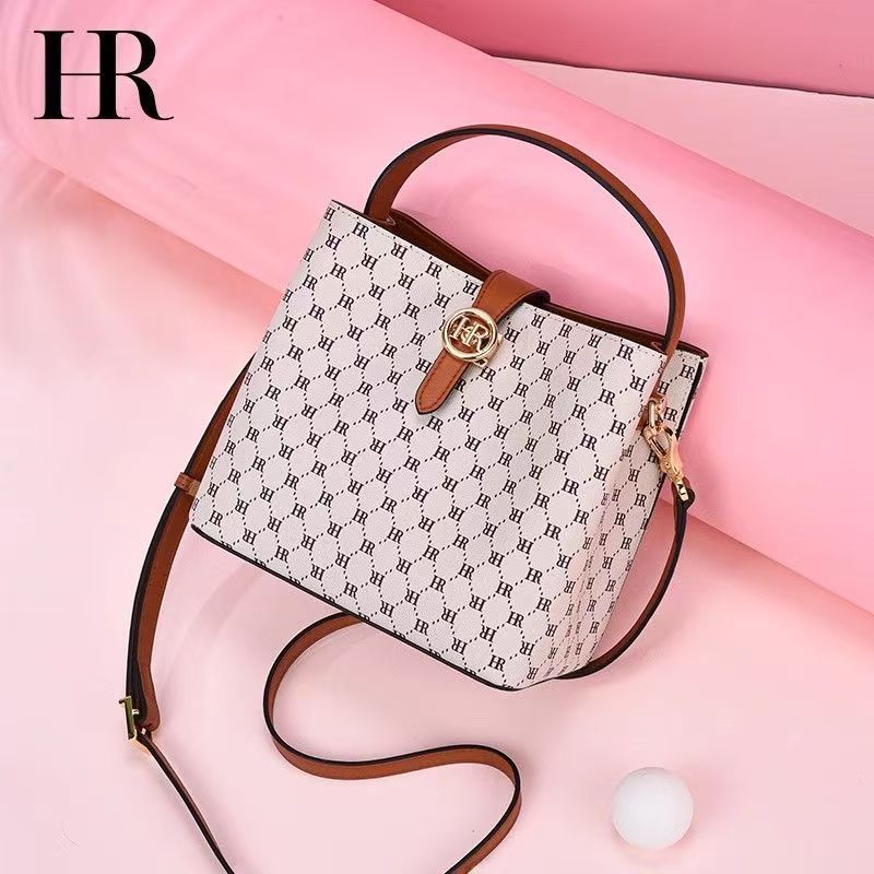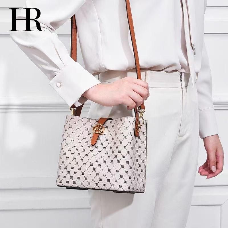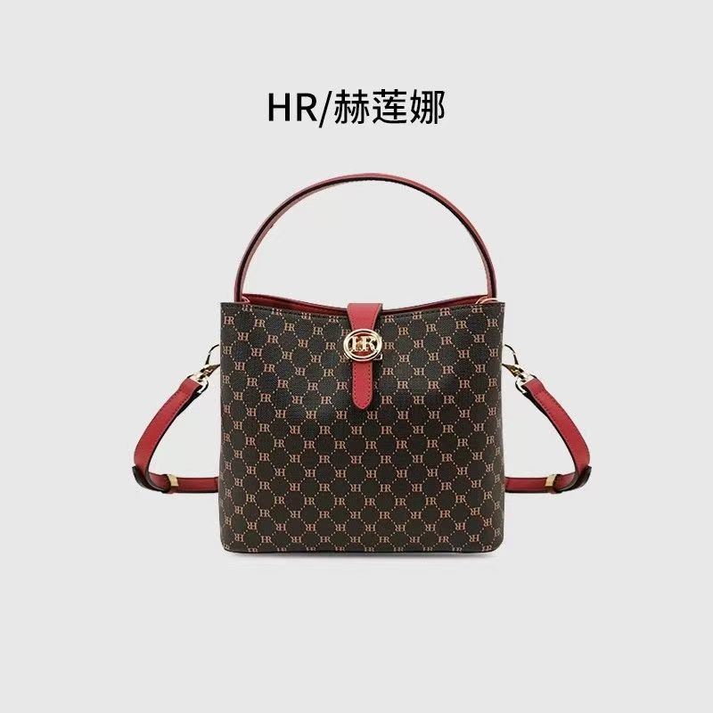 HR赫蓮娜女包2025年新款時尚輕奢手提包撞色單肩包水桶包女斜挎包
