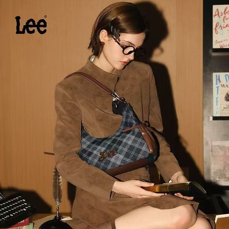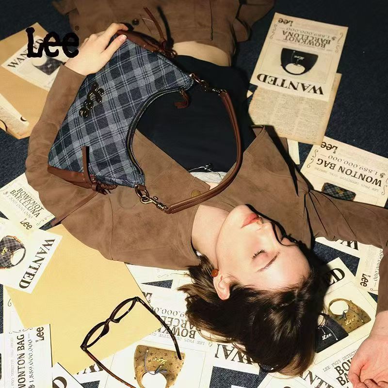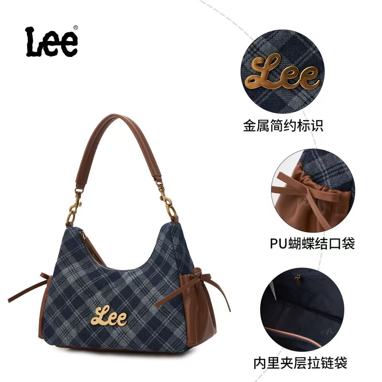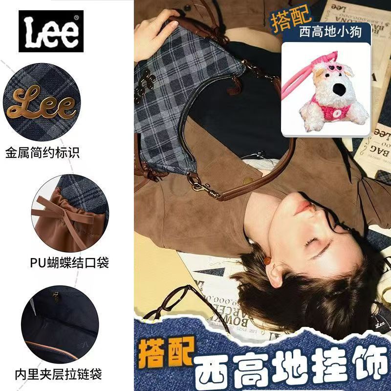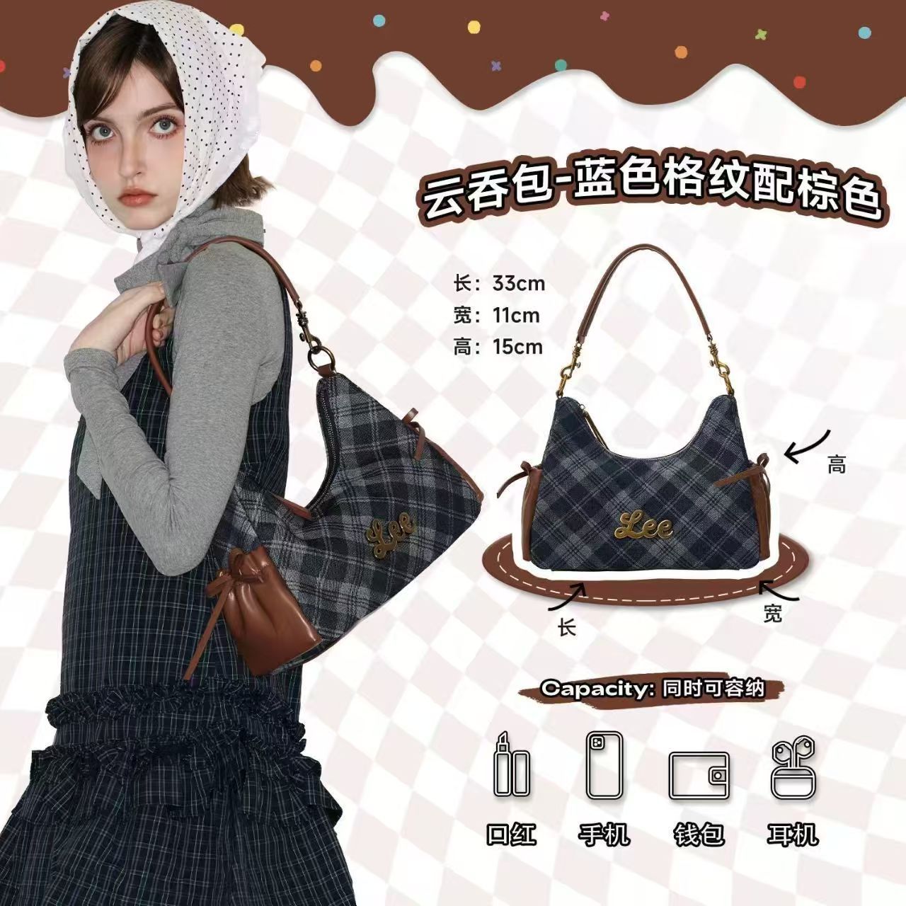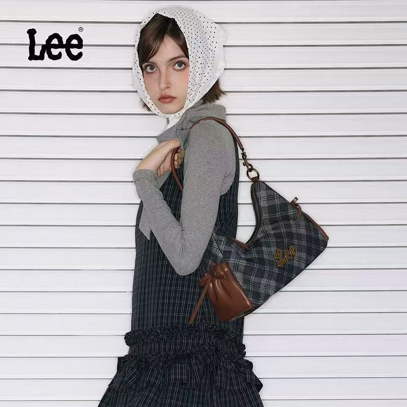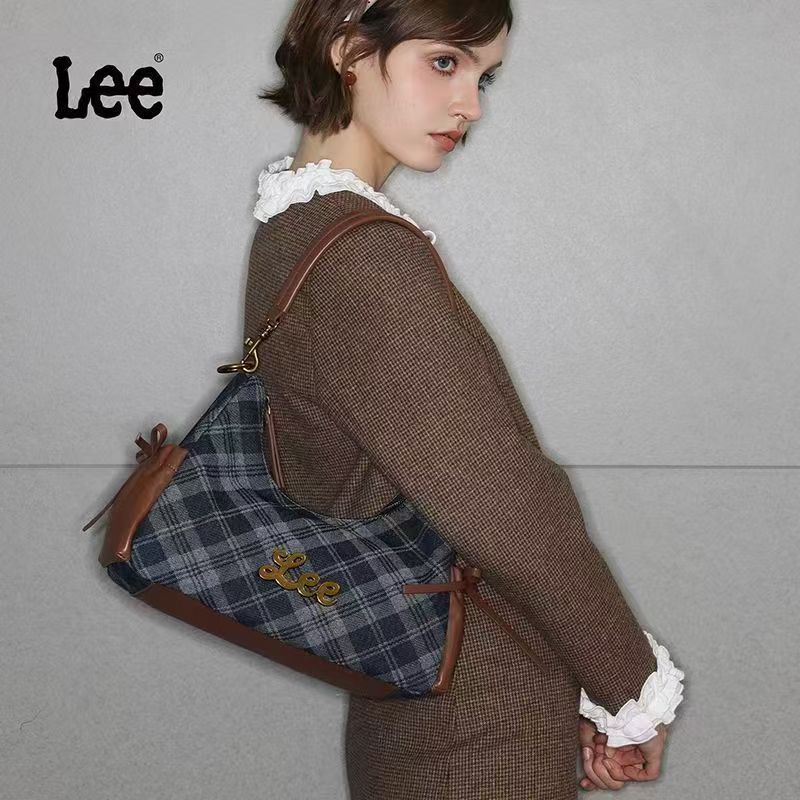 Lee新款官方托特格子時尚雲吞包大容量女生腋下單肩手提通勤禮物.