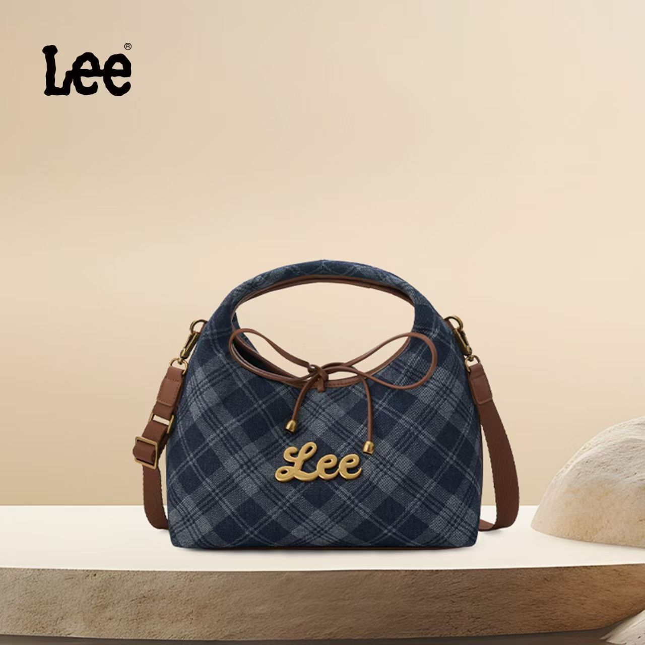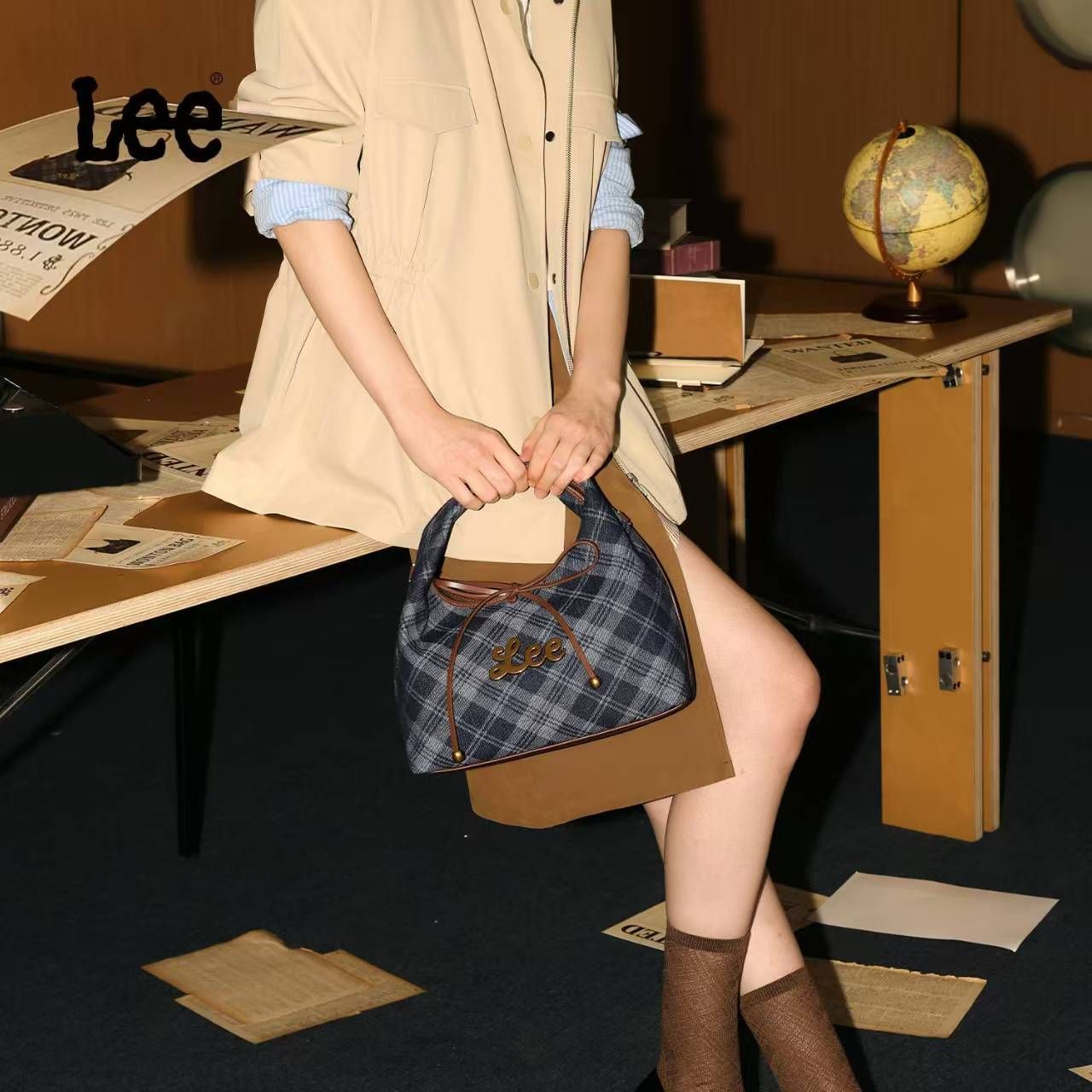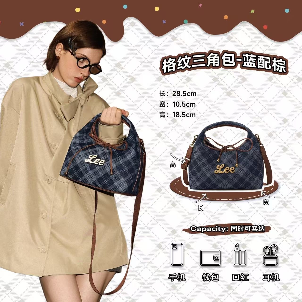 Lee秋冬新款格紋斜挎包女包法式復古通勤手提包英倫風時尚三角包