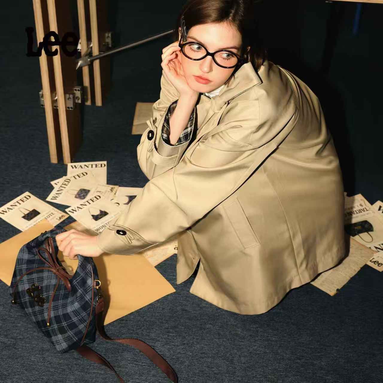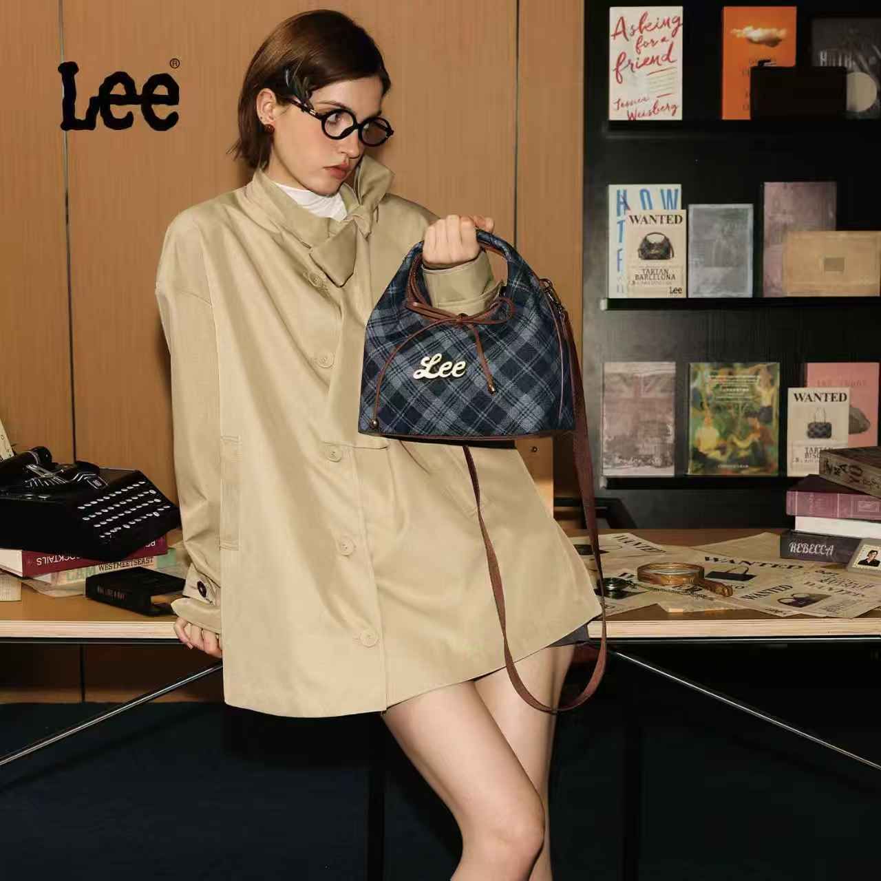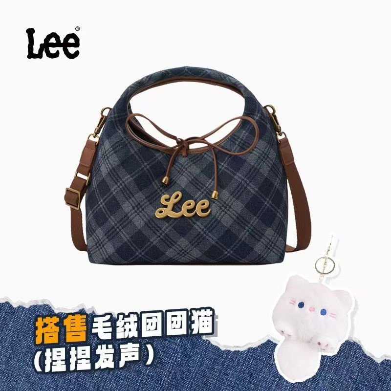 Lee秋冬新款格紋斜挎包女包法式復古通勤手提包英倫風時尚三角包