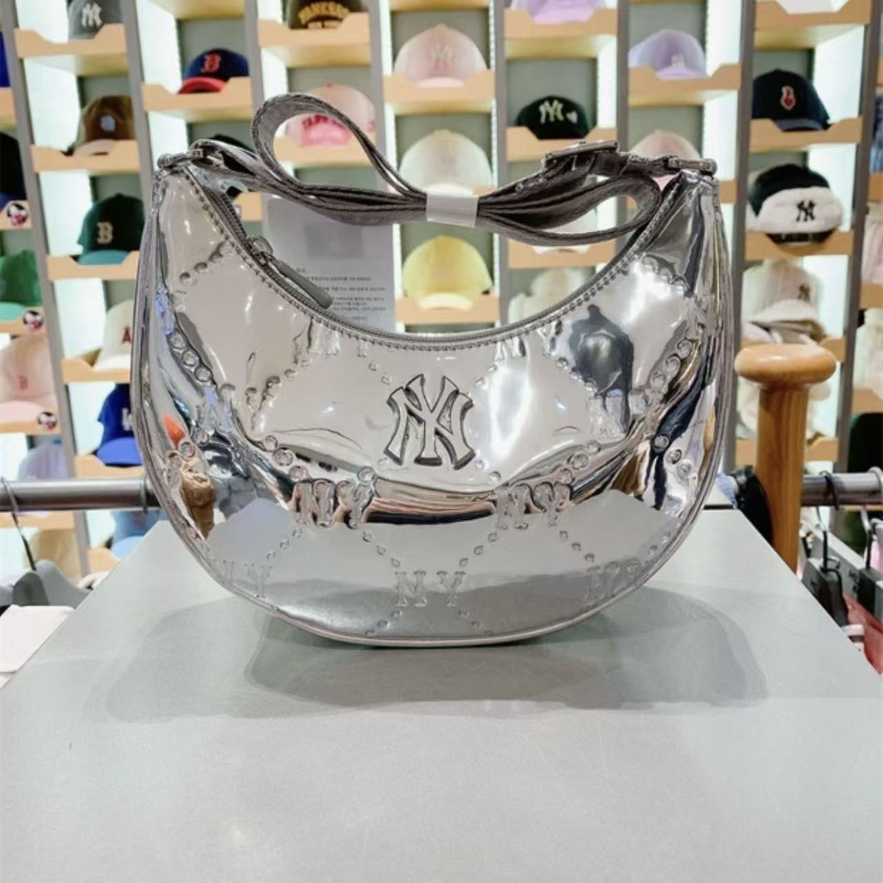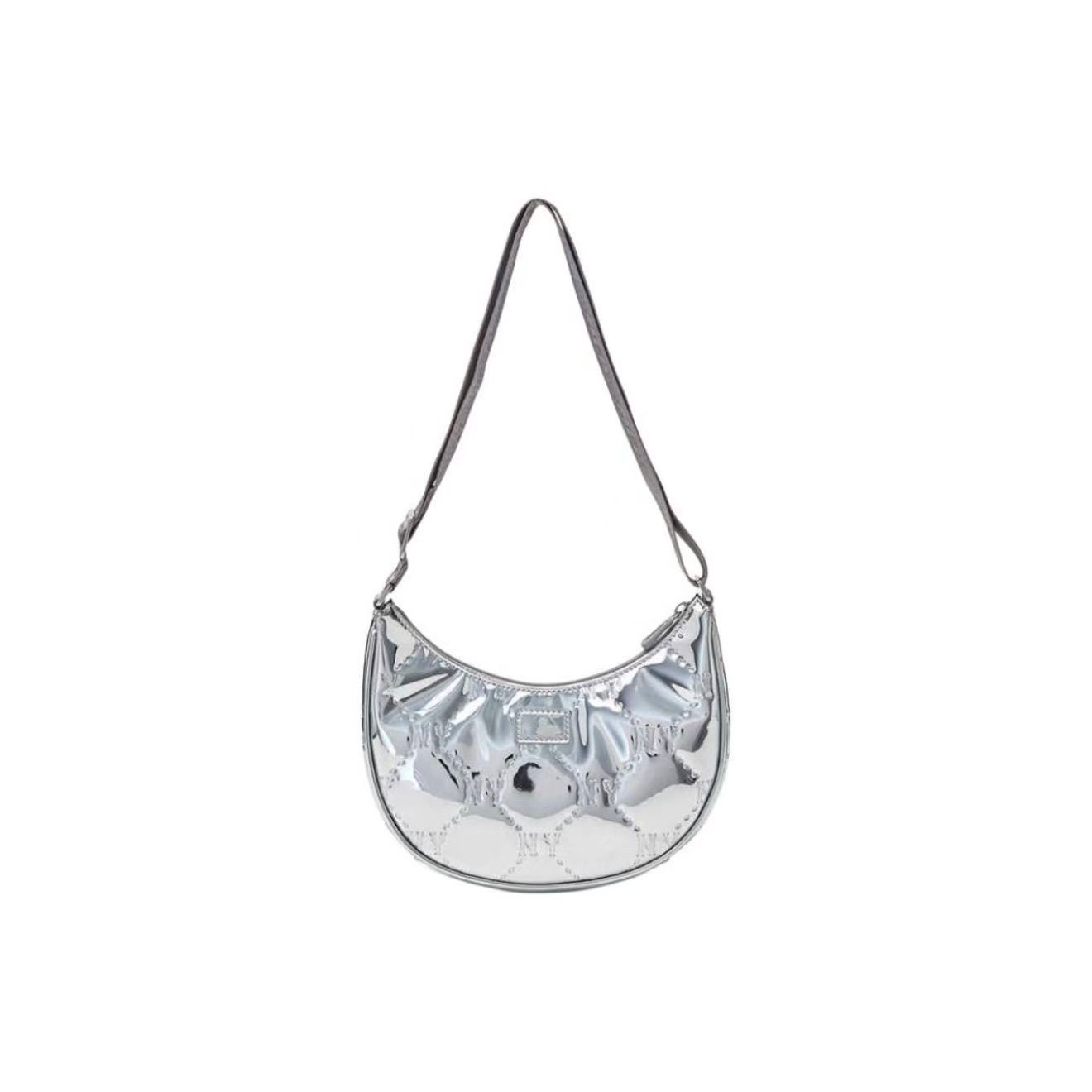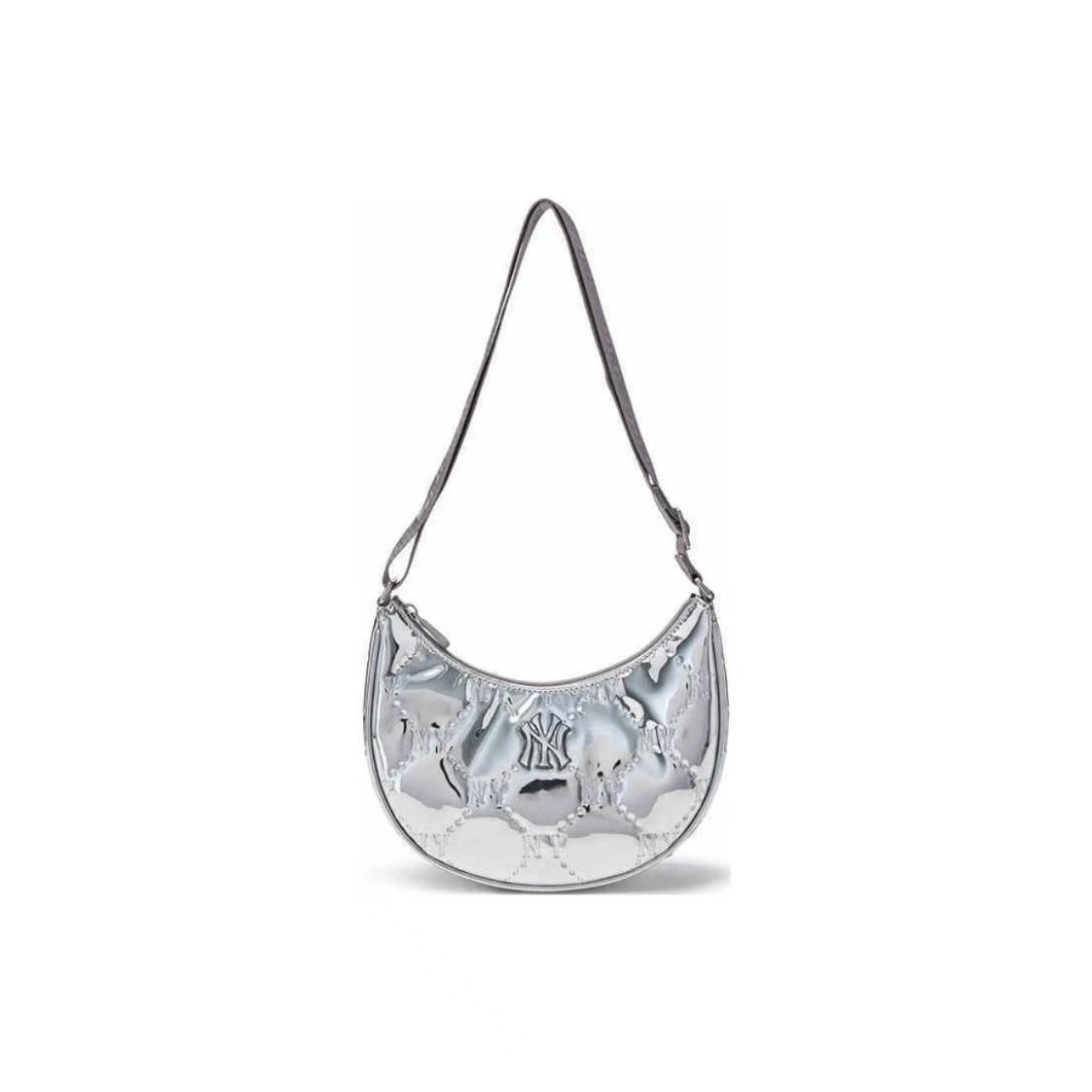 MLB復古鉆石壓花滿標拉鏈亮面單肩包月牙包女款手拎包7ACRMD75N