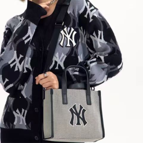 MLB正品新款帆布托特包NY紐約洋基隊男女款單肩挎包手提包方形包