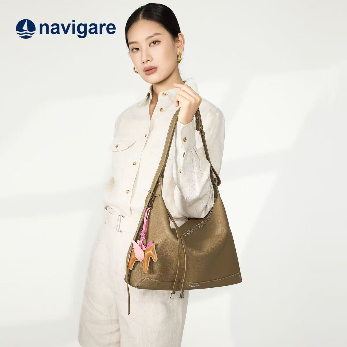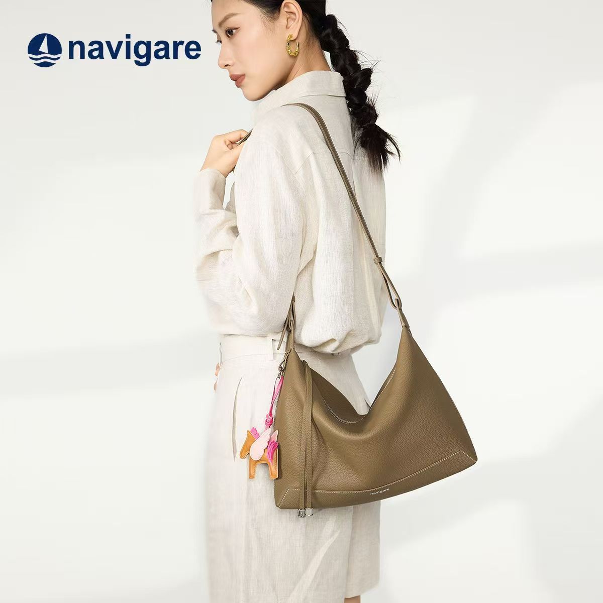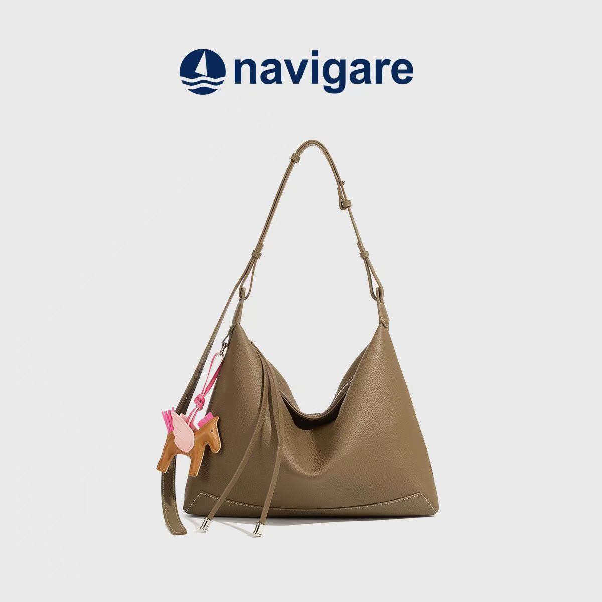 Navigare意大利小帆船女包真皮腋下包牛皮小眾大容量單肩斜挎包包