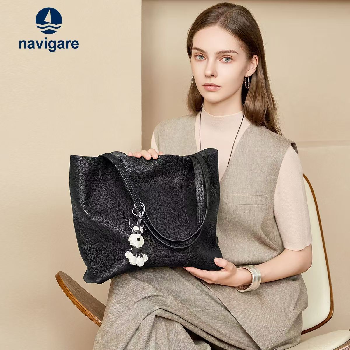 Navigare托特包包女純頭層牛皮女包柔軟大容量百搭通勤包單肩包