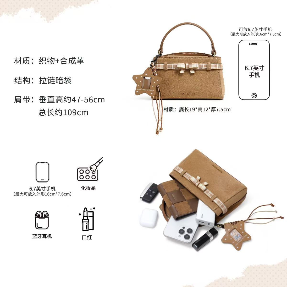 TOUTOU仿麂皮星星凱莉包高級感斜挎包送閨蜜送女友
