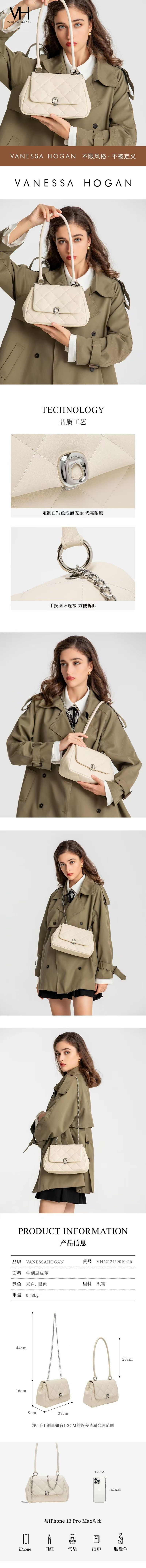 VH女包泡泡梯型包經典菱格腋下包質感牛皮斜挎包高級感鏈條單肩包