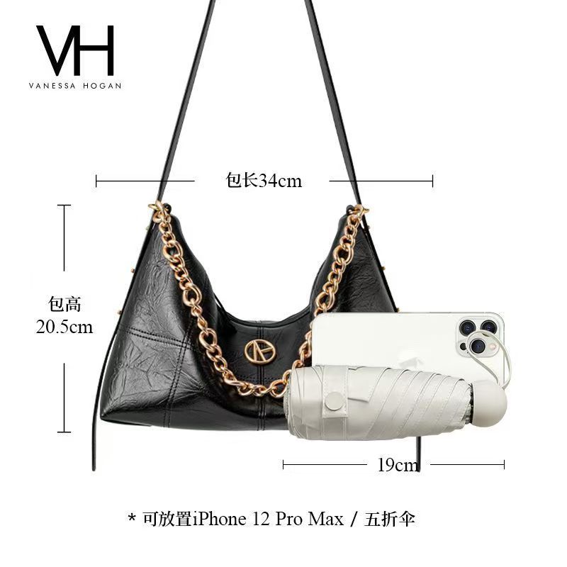 VH女包淩方月芽包褶皺個性通勤包包斜挎包高級感鏈條手提包單肩包